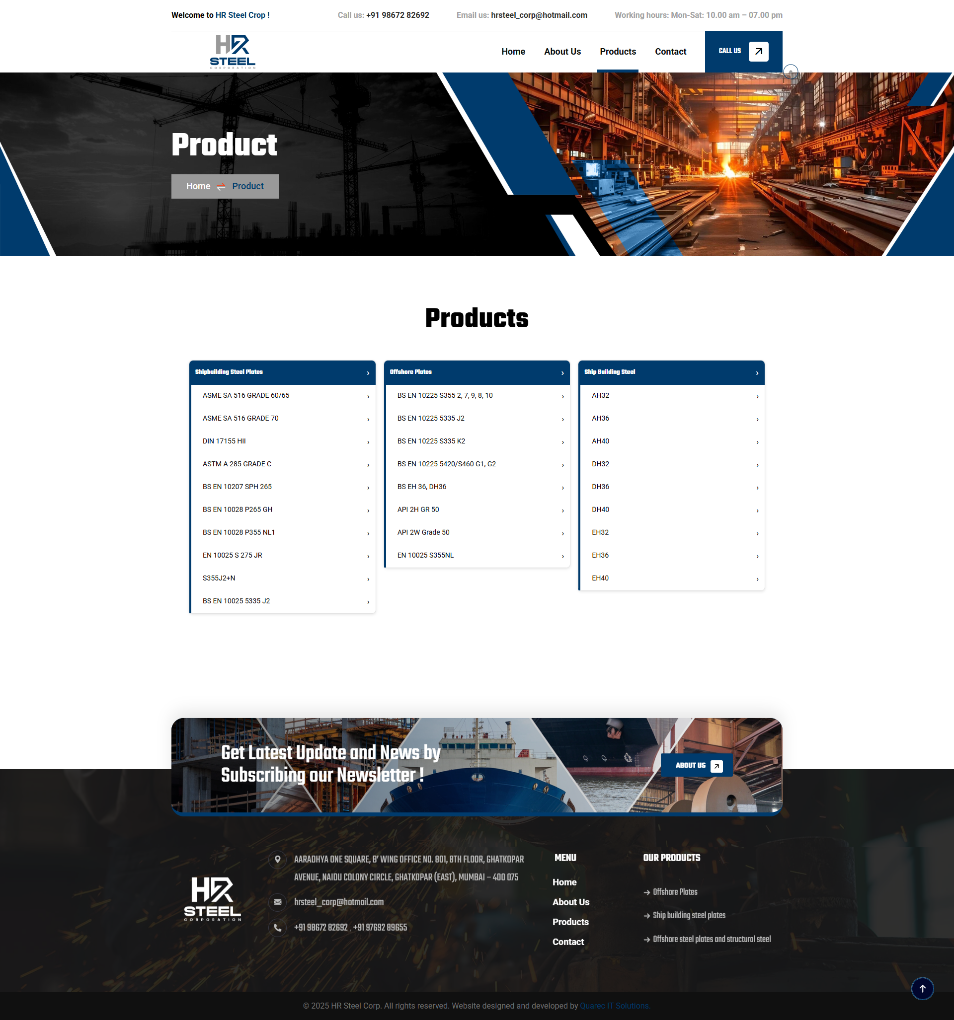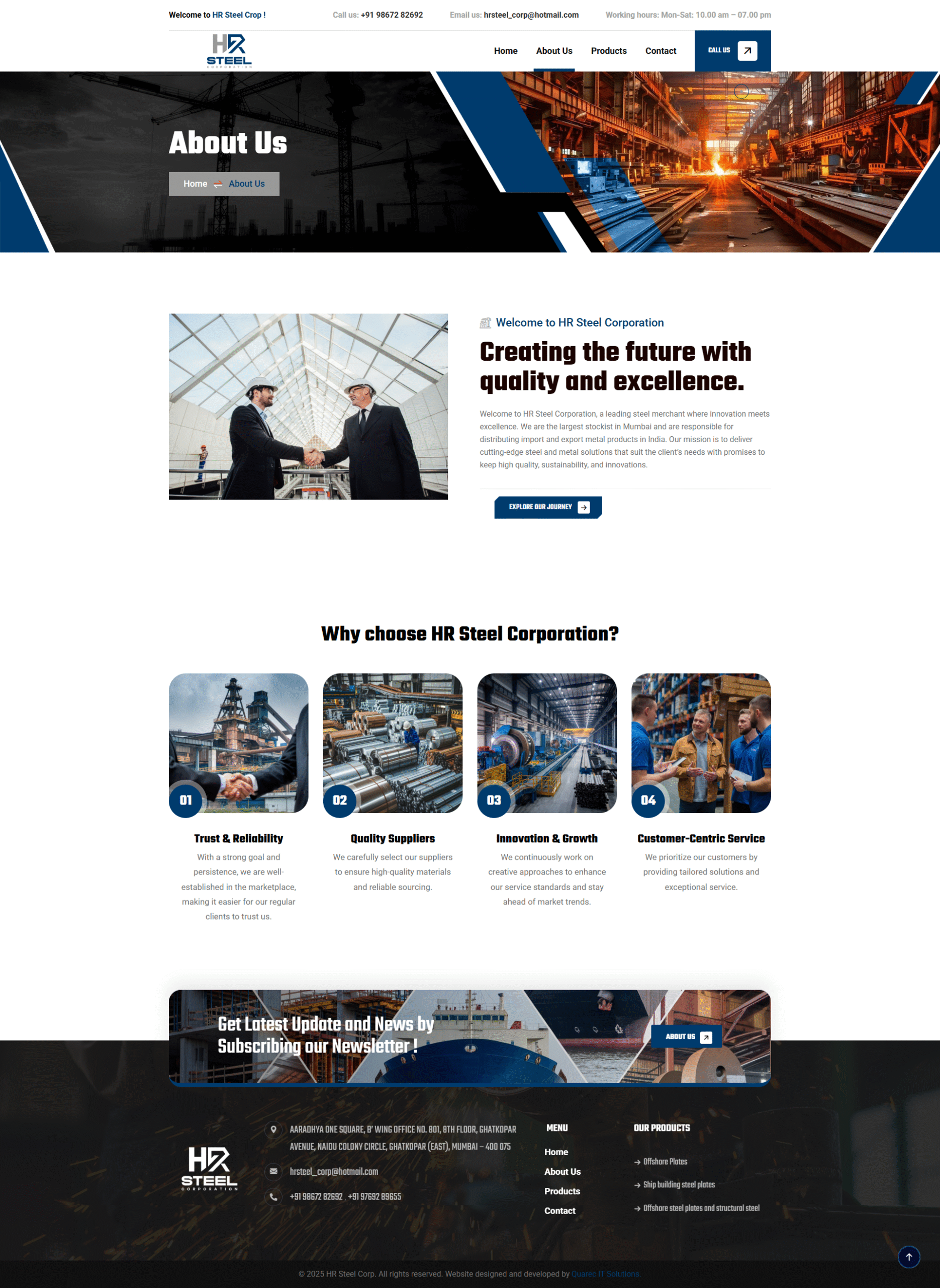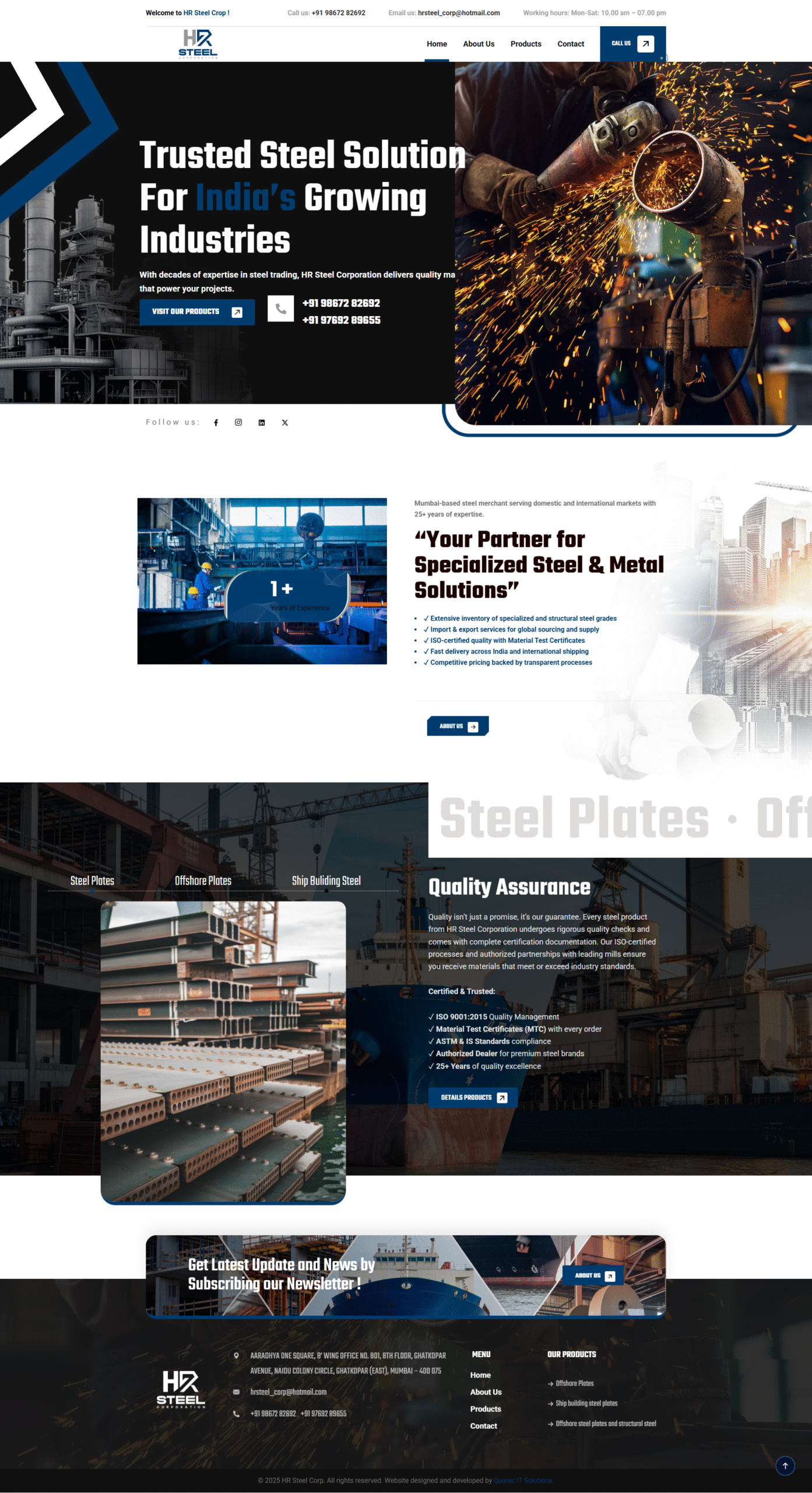 HR Steel, a dynamic leader in the steel manufacturing and supply sector, partnered with Quarec IT Solutions to elevate its digital presence with a high-performance, fully responsive web platform. The project aimed to mirror HR Steel’s brand ethos—strength, reliability, and precision—through intuitive design, cutting-edge development, and seamless user experience.